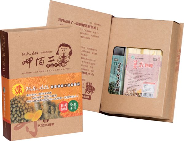 養生茶油250ml*1+養生薑黃麵線*1 【產品內容】健康的「養生茶油」與長壽的「養生薑黃麵線」結婚了! 名間農會結合本地特色產品製成麵線與茶籽油,一起來照顧您的胃;照顧您全家人的健康,更是您送禮最好的選擇