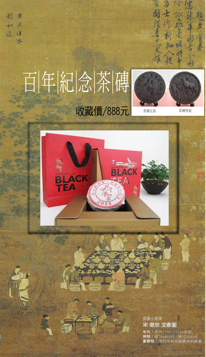 品名 魚池鄉農會百年紀念茶磚 規格 17cmX17cmX4cm(外盒) 重量 100g 百年來,魚池鄉農會陪著在地農人 經歷每一個生命轉折; 並扮演著最忠實的依靠者; 未來,魚農也本著專業熱忱的服務, 滿載幸福的茶滋味,為魚池鄉創造出更大的空間。