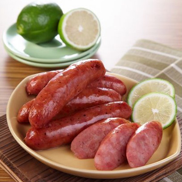 豬後腿肉,以古老釀造配方醃漬24小時以上灌製而成,真實呈現飽滿肉質的滑嫩口感。並以三分肥、七分瘦肉質黃金比例精製而成,再加入檸檬汁,吃起來口味清香解油膩,但卻沒有酸澀感,香腸與檸檬的結合擦出另一種完美契合的火花,炎炎夏日就來嚐一口開胃解膩的黑胡椒香腸吧!