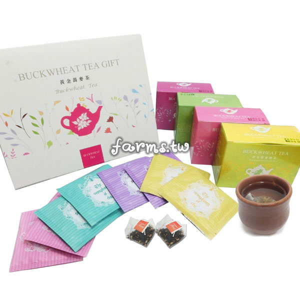 > 台灣黃金蕎麥-玉民香油.小丸子.海苔片 > [玉民-台灣黃金蕎麥] 黃金蕎麥綜合茶禮盒(蕎麥茶*1盒/蕎麥烏龍茶*1盒/蕎麥紅茶*1盒/蕎麥綠茶*1盒)(3克*6入*4盒)*2禮盒蕎麥茶x1盒/蕎麥烏龍茶x1盒/蕎麥紅茶x1盒/蕎麥綠茶x1盒/禮盒