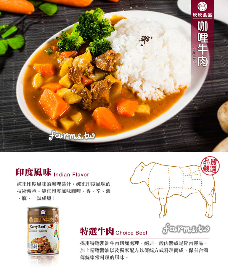 > 欣欣食品-肉乾.餅乾 > 欣欣咖哩牛肉(原味) 250g*24罐印度風味的咖哩醬汁,純正印度風味的技術傳承