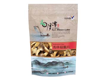 品名 秀珍菇脆片 -- 黑胡椒 重量 90克 保存期限:十個月 包裝袋富有濃厚的日月潭特色